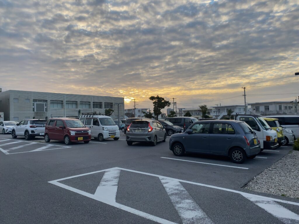 夕方【未来創造センター】の図書館に入ります。混んでいてほとんどが学生です。高校受験の勉強でしょうか。多良間島の塩爺から頼まれた調査をして、あとは自分の仕事をしました。18時に図書館を出ると少し夕焼けが見られました。