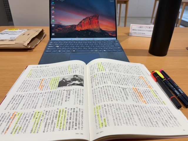 午後に【未来創造センター】の図書館でのんびり読書をします。「致知」で松下幸之助さんの記事を読み、深掘りをしようと松下幸之助の本を2冊借りました🤗。