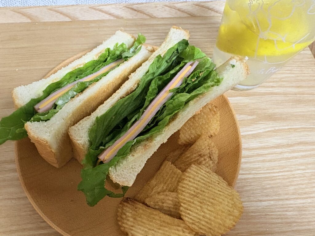 晩ごはんだけでは足りず、富士パンの「おはよー食パン」をトーストしてサンドイッチを作りました。焼いたパンも美味しいですが、私はトーストより焼かないパンが好きです😃。
