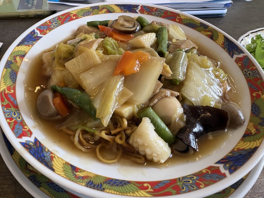 12時から【ホテルアトールエメラルド宮古島】のレストラン【カーレント】で同友会宮古支部役員会に出席。今回もファシリテーター(進行役)を務めます😃。ミーティングの前に各自ランチを頼みますが、13人中8人が白身魚甘酢かけ定食を注文😮。私は五目あんかけ焼きそばにしました😋。体調がイマイチで帰宅後はベッドで横になりました。