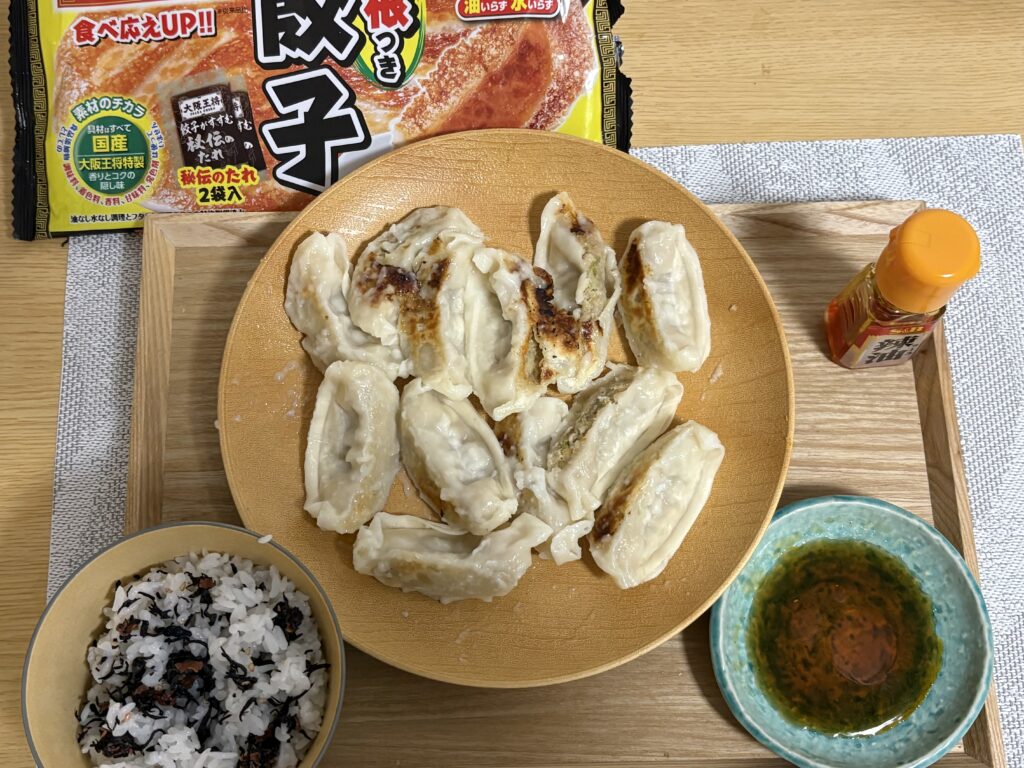 晩ごはんは、半年以上前に買ってあった冷凍食品の【大阪王将】羽付餃子。油なし、蓋なしと説明書き通りに作ったのですが、パッケージの写真とはビックリするぐらい別物に仕上がりました😮。再挑戦? うーむしなくていいかな😆。