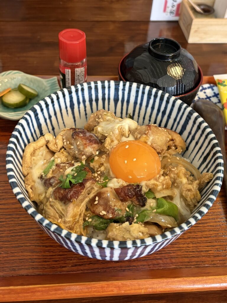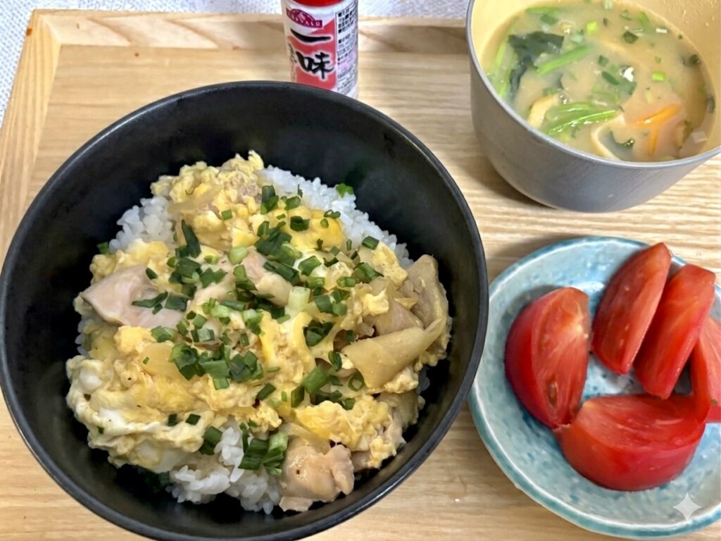 晩ごはんは残っていた県産鶏肉を使って親子丼を作ります。【たまご家おかん】の黒糖を使った親子丼に触発されて自分でも作ることに。黒糖は先日冝保先生からいただい多良間黒糖を使います。やはり今日も冝保先生が登場です😃。適当に作ったので見た目も味もたまご家おかんには遠く及ばず💦。研究の余地か多いにあります😃。