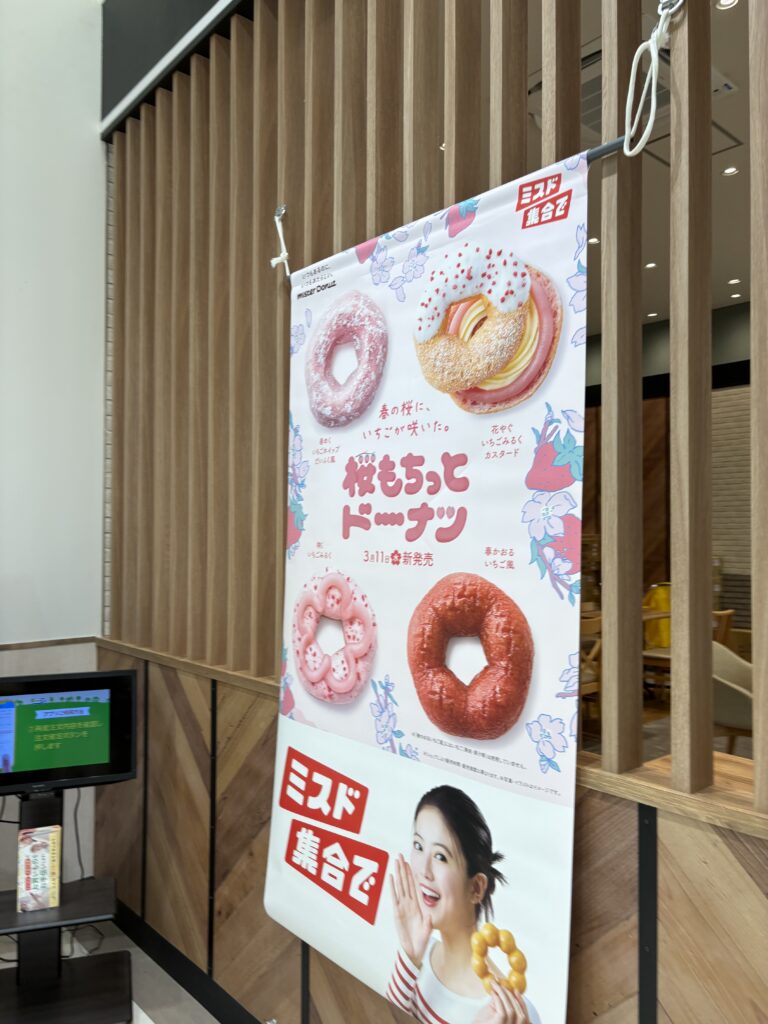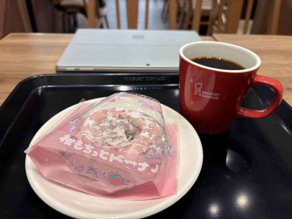 10時【ミスタードーナツ】に入店。今日新発売の商品を購入。毎年この時期に限定で発売される桜シリーズです。昼に開催のミーティングの準備をしました😃。