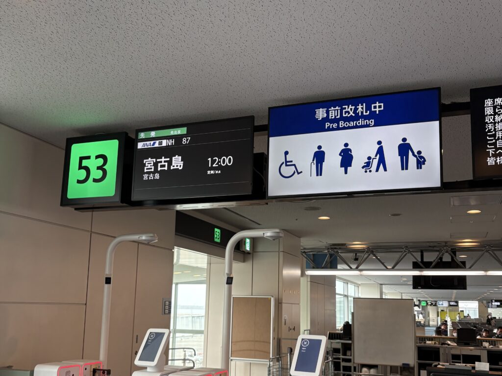 地下鉄、JRは空いていましたが、モノレールはかなり混雑しています。最後方に座ったので景色がよく見えます。羽田空港に到着すると夏休みのような混雑です。久しぶりにANAで宮古島に帰ります。知らない間にコンコースができていました。