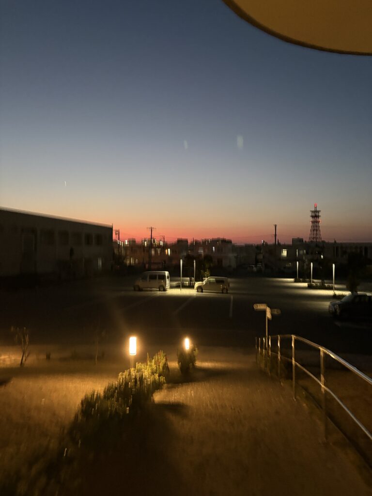 帰宅すると19時を過ぎています。図書館が19時閉館なので、外にある返却ポストに7冊を入れて返却完了。結局3冊しか読みませんでした💦。振り返るとマジックアワーがきれいでした😊。