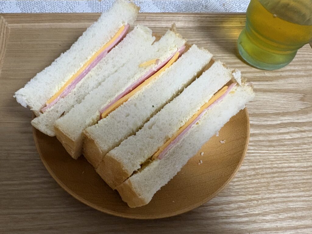 5時半に目覚ましアラームが鳴る前に起床。玄関を開けると野鳥の鳴き声がよく聞こえます。朝ごはんは久しぶりに富士パンを使ったサンドイッチです。野菜も牛乳もヨーグルトもないので寂しい朝ごはんでした。