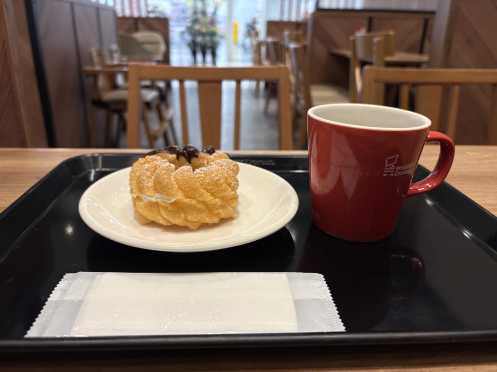 10時【ミスタードーナツ】に入店。奥の席で仕事を始めます。今日は祝日で図書館が休みなので、2時間近くいました。