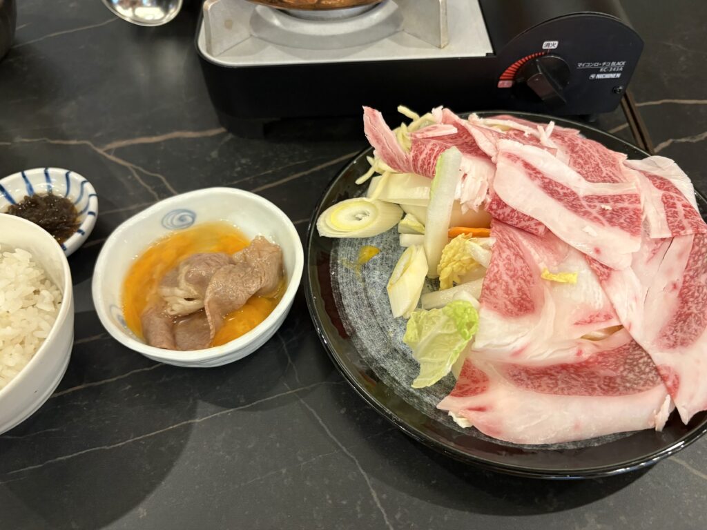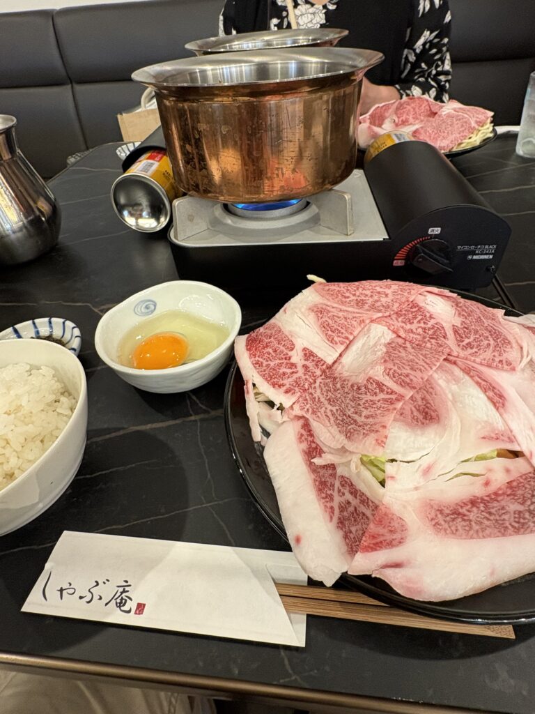 【しゃぶ庵本店】へ行き、リゾートライフの柿本さんとランチを食べます。今日は豪華に宮古牛のすき焼きです。半年ぶりに宮古牛を食べました😋。1時間ぐらい雑談をしました。