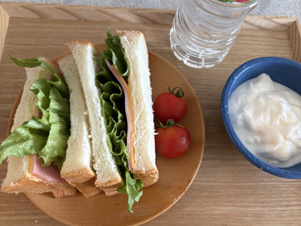 6時起床。朝ごはんは富士パンのおはよー食パンを使ったサンドイッチです。洗濯と昼ごはん用のお弁当を作ってから出かけました。