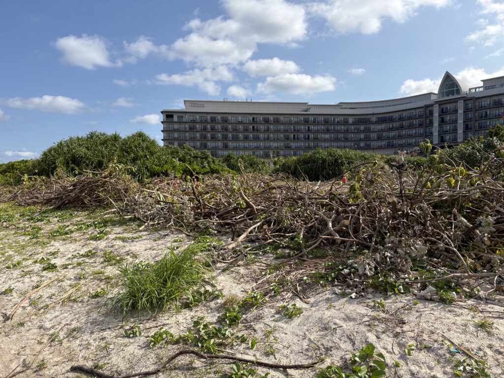 ヒルトンホテルの前の草木が日々刈られていきます。もちろん理由があってのことだも思いますが、自然に関するツアーを催行している身としては哀しいです😢。