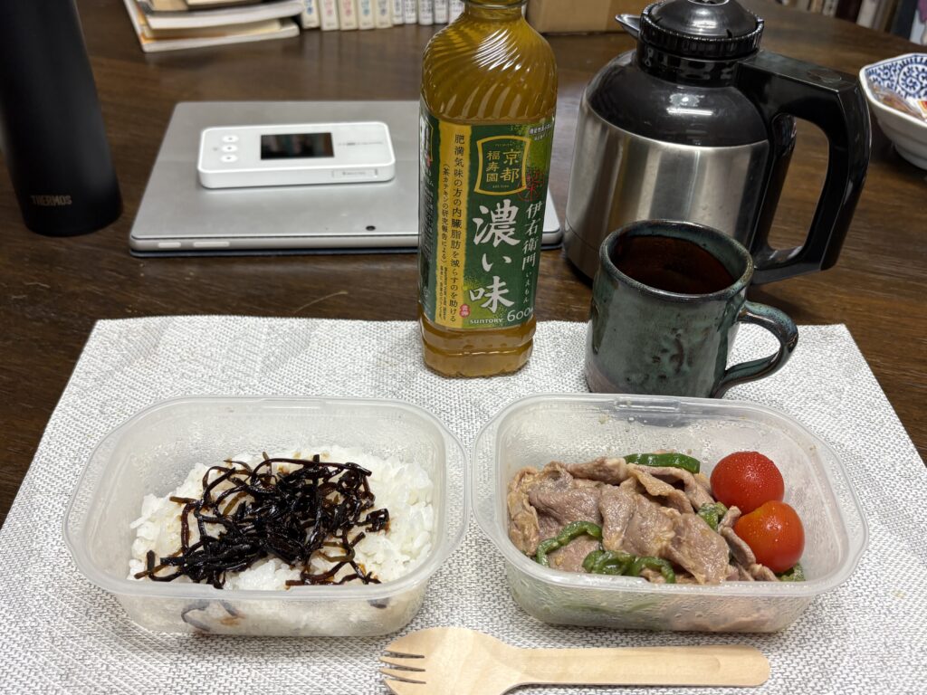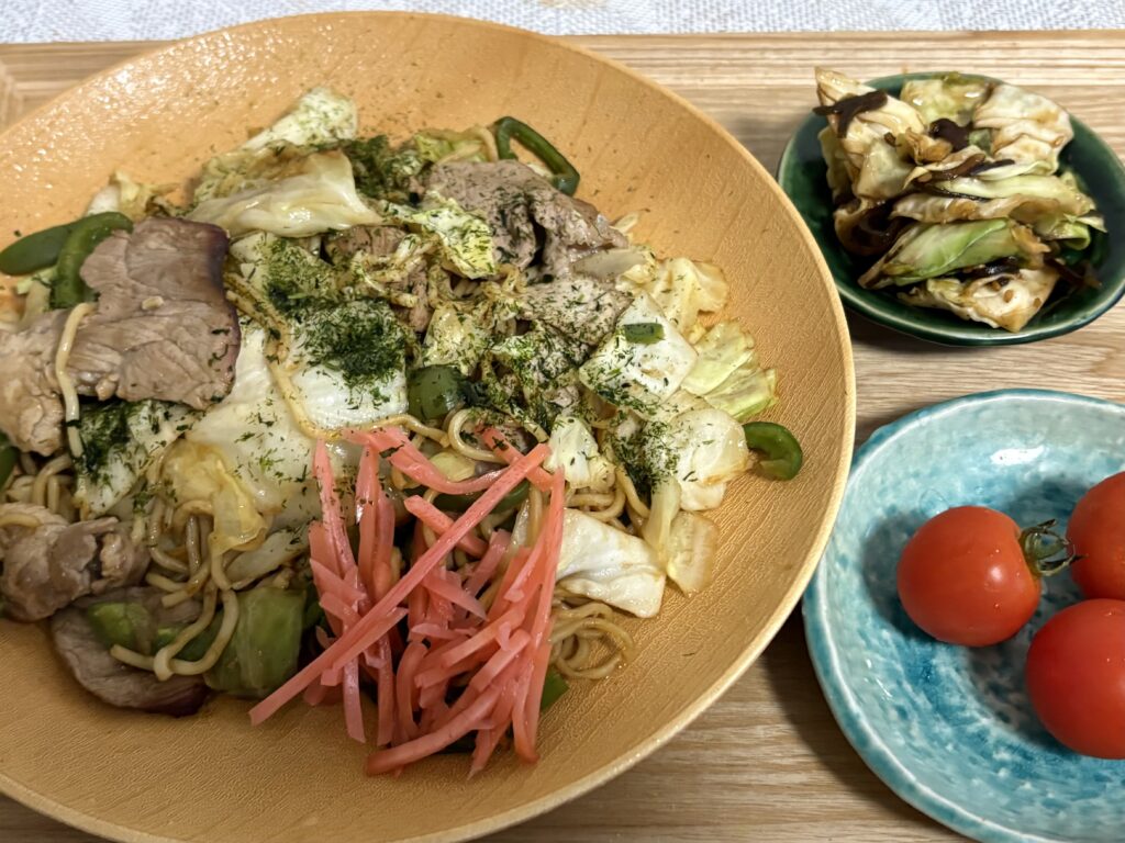 晩ごはんは昨日作った焼きそばをチンして食べます。やはり作り立てとは味が違いました😆。