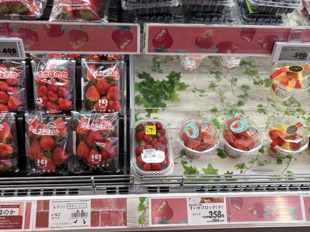 帰りに【マックスバリュ南店】で買い物をします。運良く【まるごと宮古島】の苺があったので購入しました🤗。画像中央の小粒の苺です。明日東京に持っていくお土産にします。
