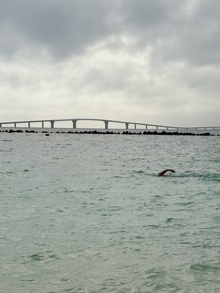 トウリバーにインスタ用の画像を撮りに行きます。今日はウォーキングをする気はありません。26℃ですが、風が強いので涼しく感じます。ビーチに家族連れが何組か来ています。この場所で初めて本格的なフォームで泳いでいる人を見ました😃。