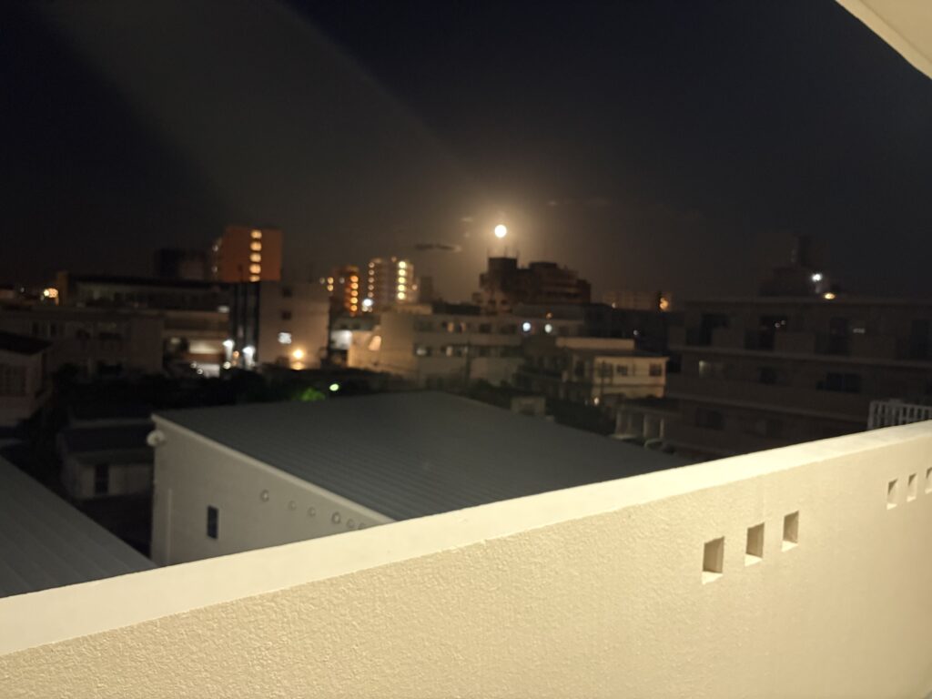 5時に目が覚めたので起きることにします。玄関を開けると満月に近い月が、夜の街を明るく照らしています。7時に朝ごはんにします。富士パンのおはよー食パンがふわふわで、いつもよりおいしく感じました😃。