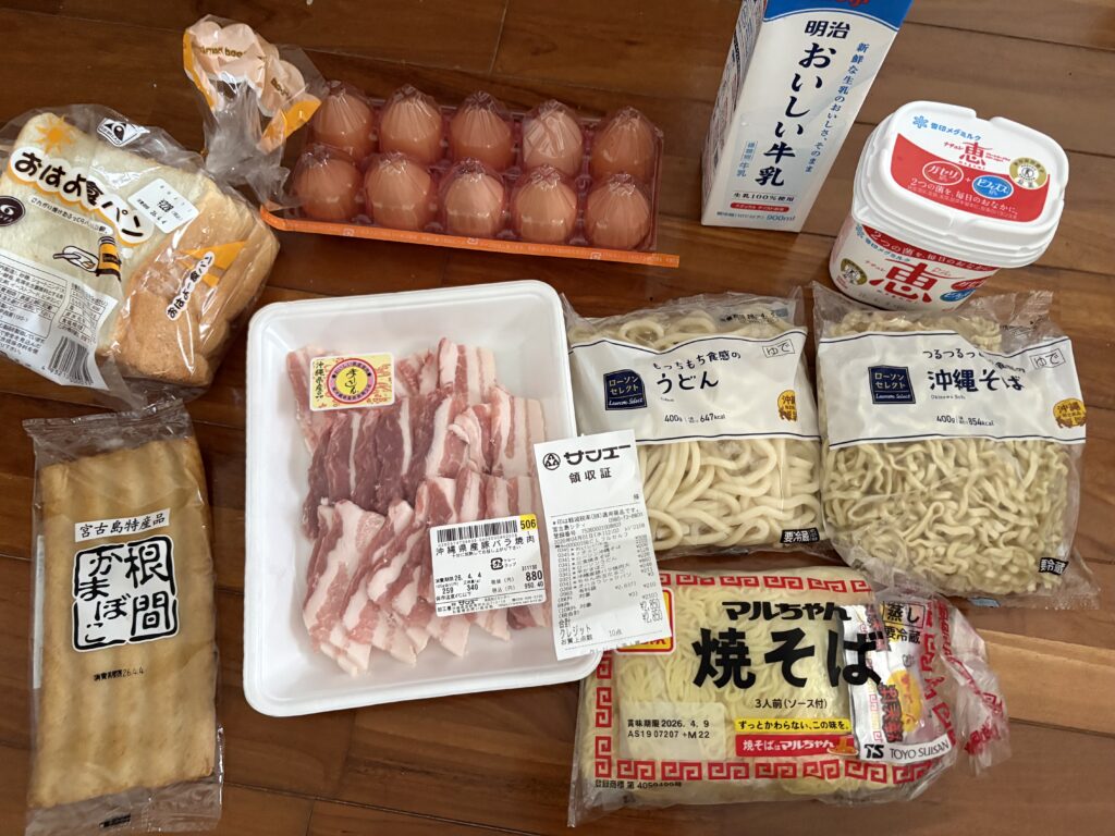 サンエーで買い物をして帰宅。いつも買うもので目新しいものはありません。