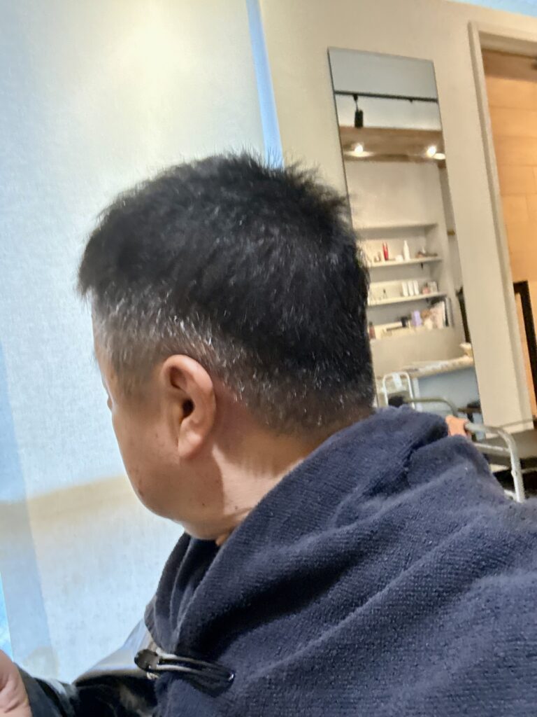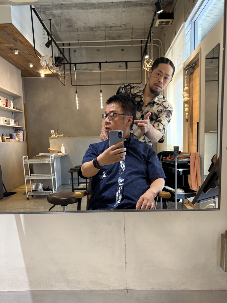 10時【salon Yamamoto】でカット&カラーをしてもらいます。今回はカットが先だったので、カラーの準備をしている間に自撮りをします。頭の下部がぐるっと1周白髪であることが判明😮。染めないとツートンカラーになるので、これからも染めます😆。元に戻ってホッとしました(右の画像)。