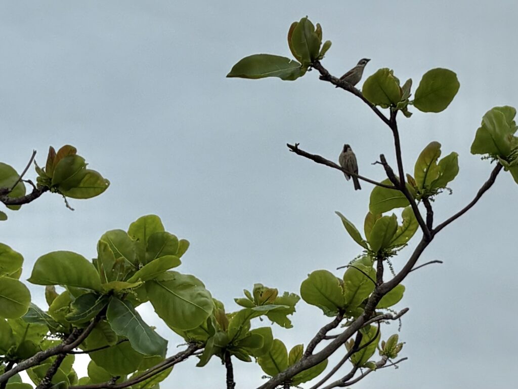 【あたらす市場】に寄って宮古島産の野菜を購入し、その後トゥリバーへ。今日も空と海が暗いです。お昼時ですが、ビーチは無人です。今日もウォーキングより野鳥が気になります。スズメが可愛いかったです。自宅に買い物した商品を置いて再び外出。