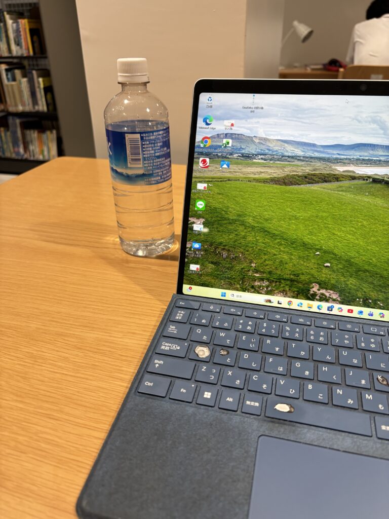 【未来創造センター】の図書館内のカフェに入り、速攻で宮古そばを食べて郷土エリアに移動。いつもの席にアナタビガイドの高田さんが座り本を読んでいます。自然に関する書籍のようで勉強熱心な方です。高田さんが一言“ここ、愛川さんがいつも座られてる席ですか😃?”“はい。高田さんなので、許します😆”。午前中に野鳥観察ツアーの問い合わせが入っていたので、急いで対応しました。