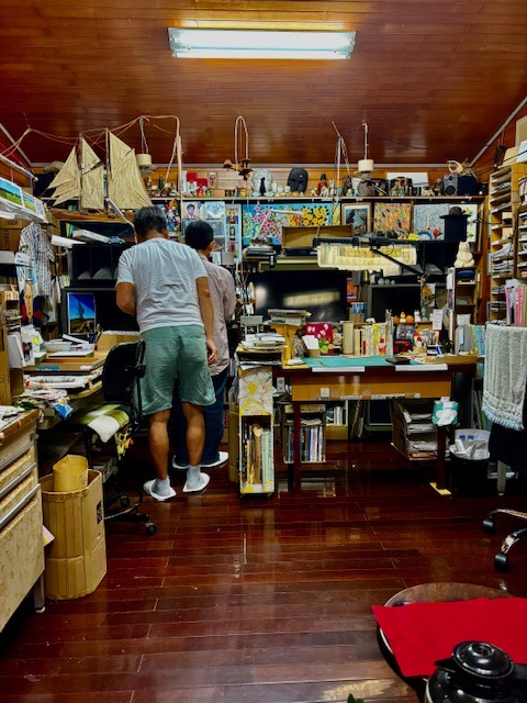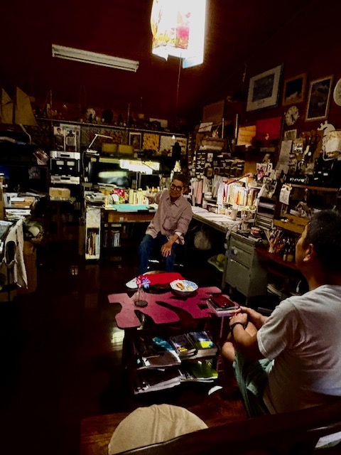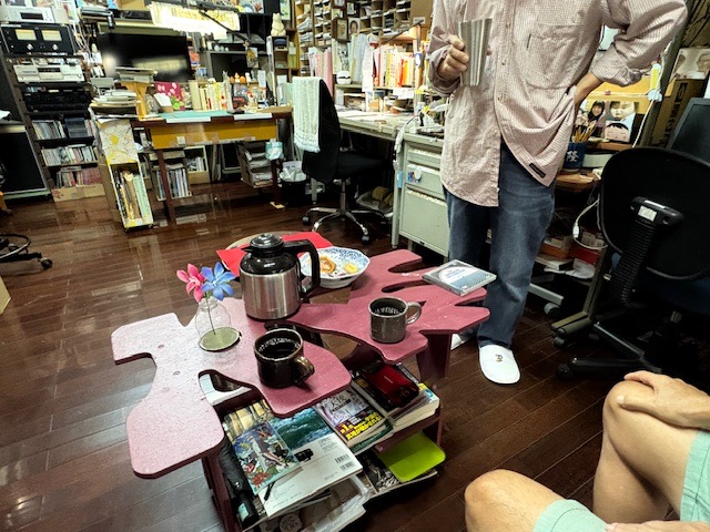 【ファミリーマート】で音のプロの先輩と待ち合わせし、冝保さん宅へ向かいます。先月に続き「音楽なんでも鑑賞会&ゆんたく」です。今回の会場は冝保さんのアトリエです。アルコールなしですが、2時間半も話が弾んで楽しかったです🤗。天才2人の仲間に入れていただき光栄の極みです😊。