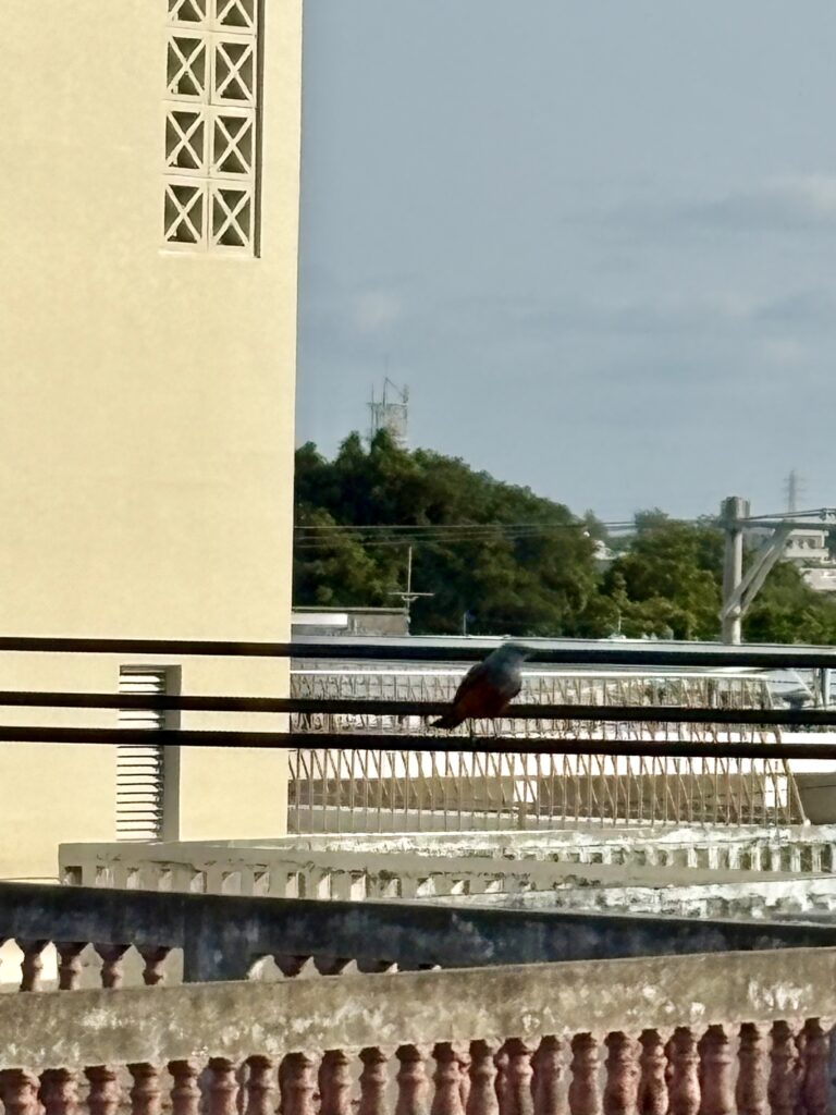8:45トゥリバーに到着。マリン関係の友人が声をかけてくれます😃。今朝は釣りをしているおじさん2人、ここでもメスのイソヒヨドリを見かけました。帰宅後洗濯をして部屋の掃除をします。