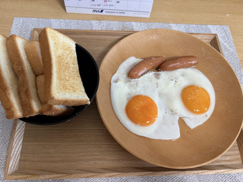 6時起床。今朝は熱帯植物園には行かず、自宅で野鳥観察をします。イソヒヨドリのオス(左)とメス(右)を見つけました。朝ごはんは富士パンのおはよー食パンとソーセージエッグです。これで食パンと卵を食べ切りました。
