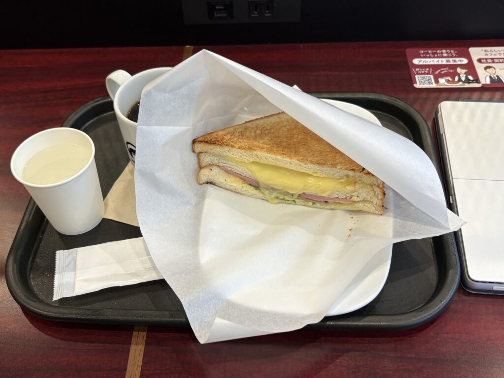 その後【ベローチェ水道橋店】に入りCセットを頼みます。喫煙ブース付近が空いていたのでそこに座り仕事を初めます。ところが喫煙ブースに出入りする人が多く落ち着かないので、別な席に移動すると仕事が捗りました😃。