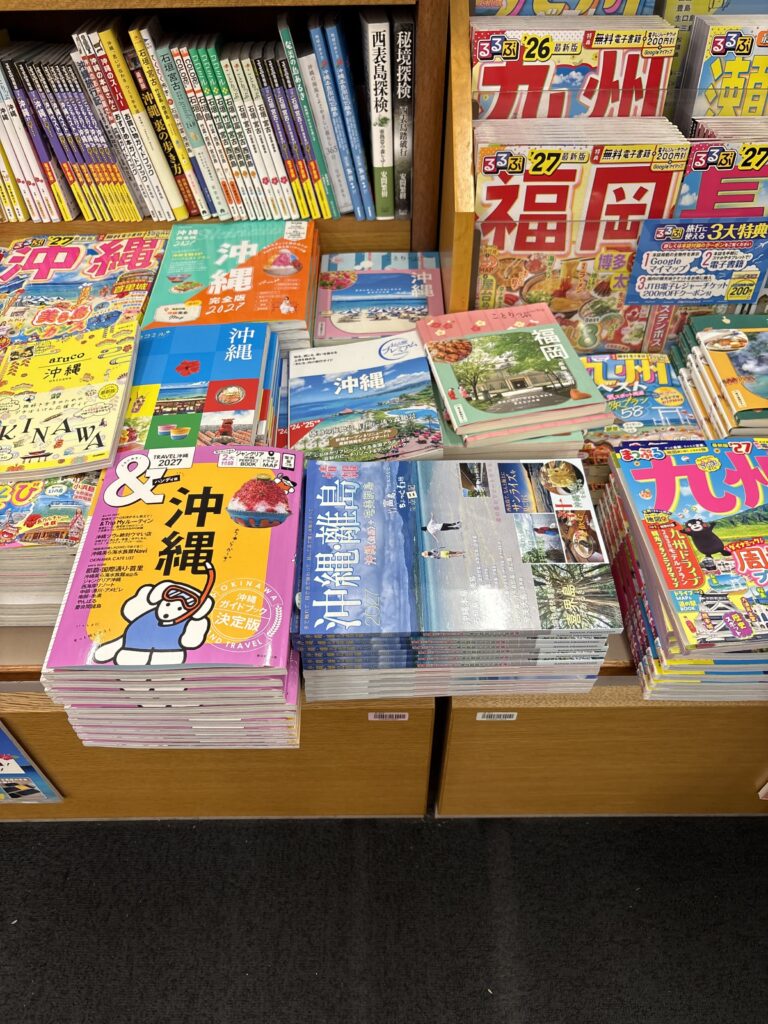新宿駅で下車。地下通路を歩いて【紀伊國屋新宿本店】に到着。4階の旅行ガイドブックコーナーで「沖縄•離島情報2027」を購入😃。この陳列の仕方はひどいなぁと思いました😢。