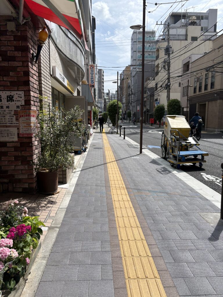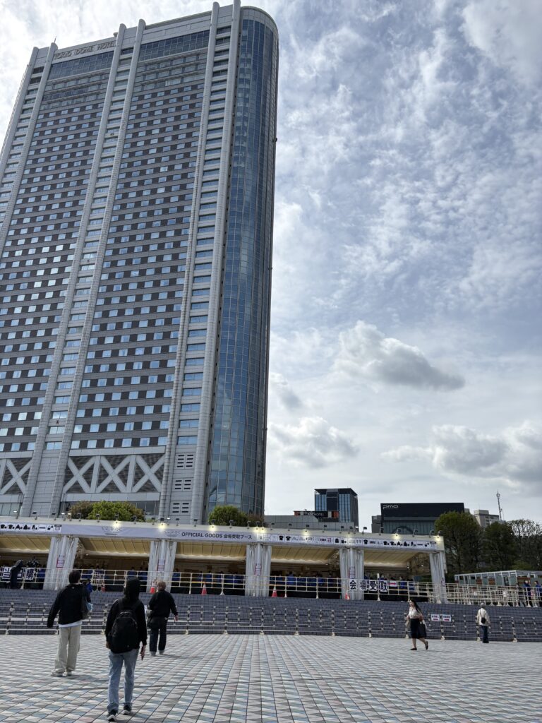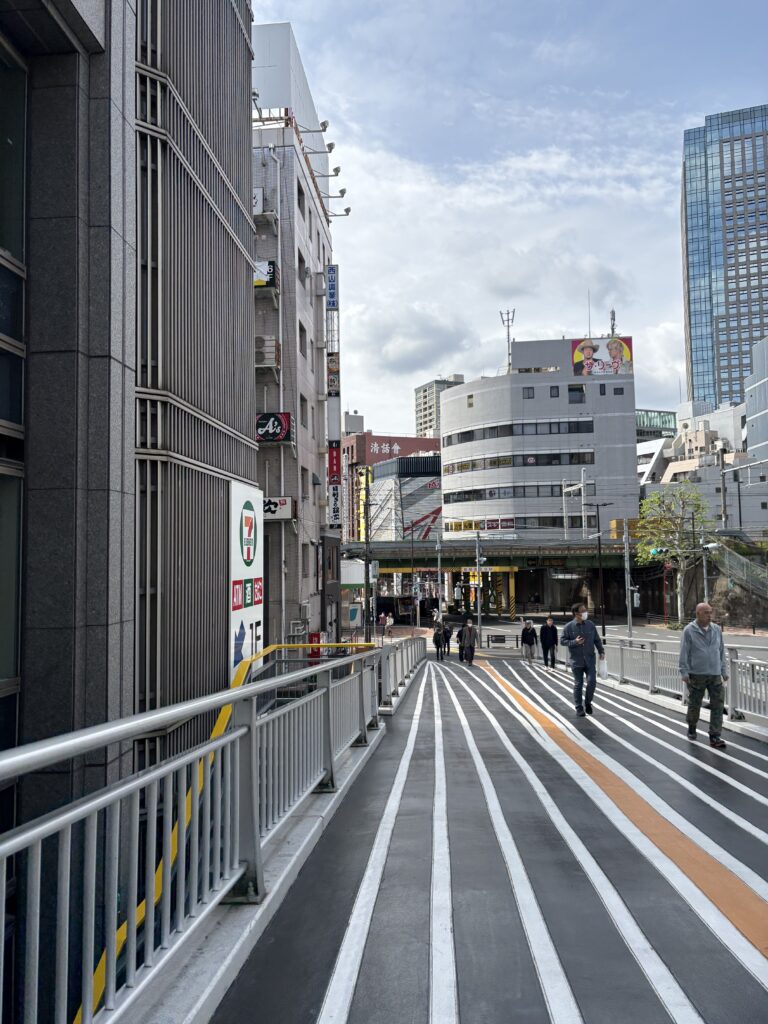 週末の朝なので、東京ドームシティは閑散としています。東京ドーム正面入り口の正面にある階段(ややこしくてすみません)が閉鎖されているので、今日はグッズ売り場に長蛇の列ができるのだと思います。今日もやる気が出る白線が塗られた歩道橋を歩きます😆。