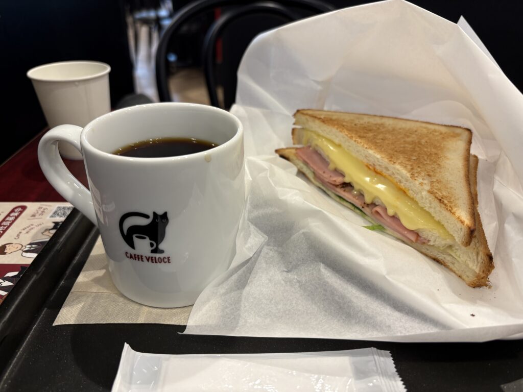 【ベローチェ水道橋店】に入ると、Cセットを頼んでお気に入り席に座ります。他のコーヒーチェーンが値上げの中、このCセットは550円のまま。有り難いです😃。事務作業が多く2時間かかって終わりました。