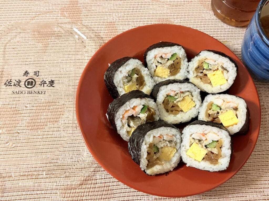 昼ごはんは昨夜実家から持ち帰った【佐渡弁慶】の巻き寿司です。冷蔵庫の野菜室に入れていたのですが、ごはんが固くなっていて残念な結果に終わりました💦。