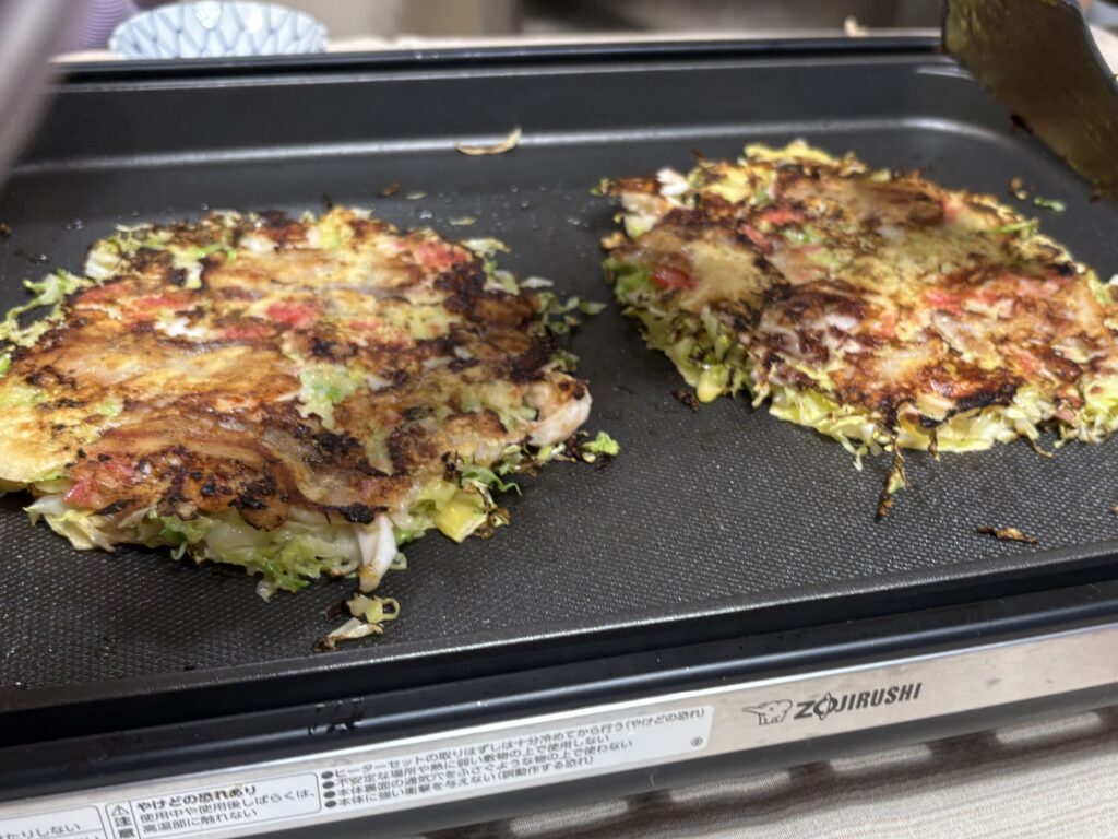 夕方から実家で月に一度のファミリー食事会です。兄夫婦のリクエストでおかんのお好み焼きと焼きそばでした🤗。