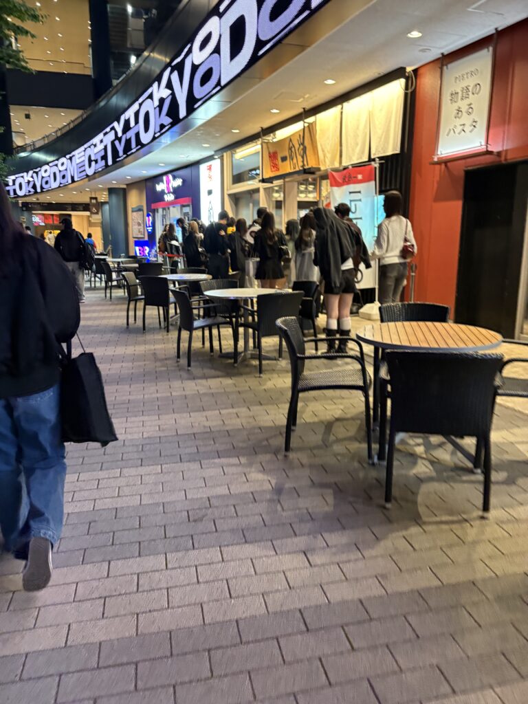 21時半後楽園に到着。すっかり忘れていたaespaのファン達が駅に押し寄せています💦。覚えていたら別なルートで帰っていました。電車は混むのでラクーアを通って自宅まで歩いて帰ります。駅へ直行する人がほとんどでラクーアは空いています。一風堂の行列を見たらお腹が空きました😆。