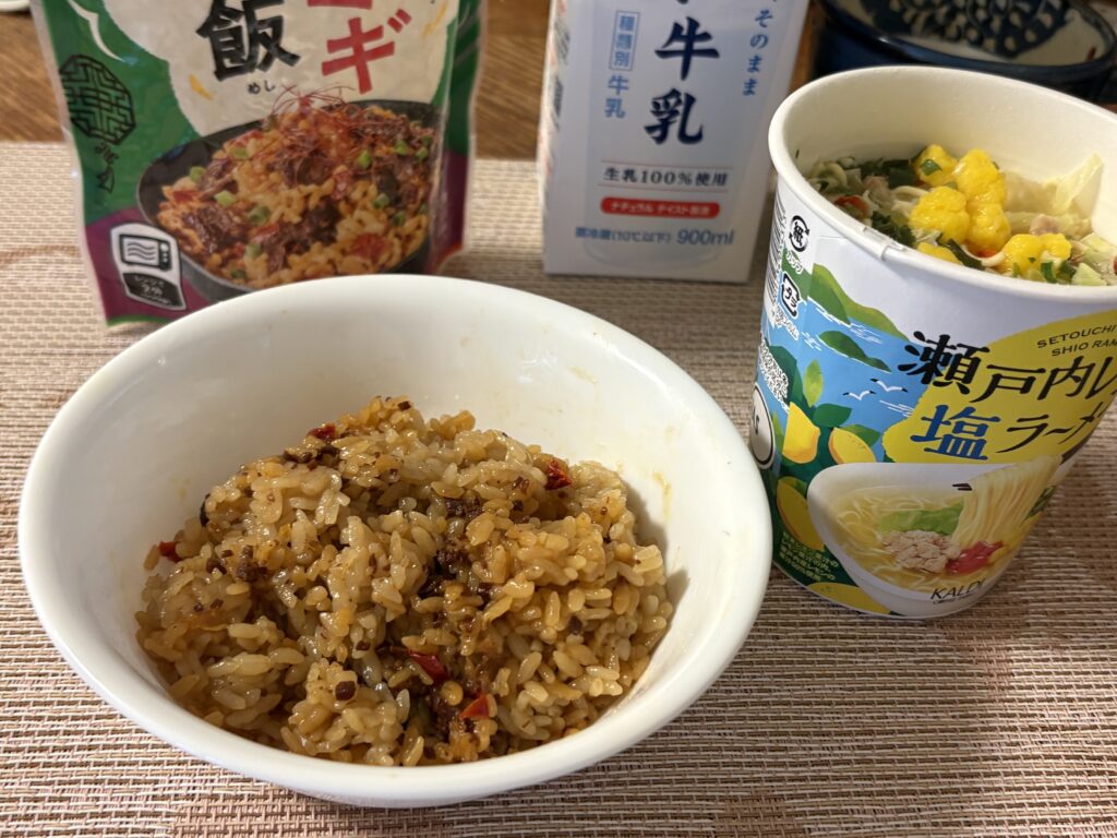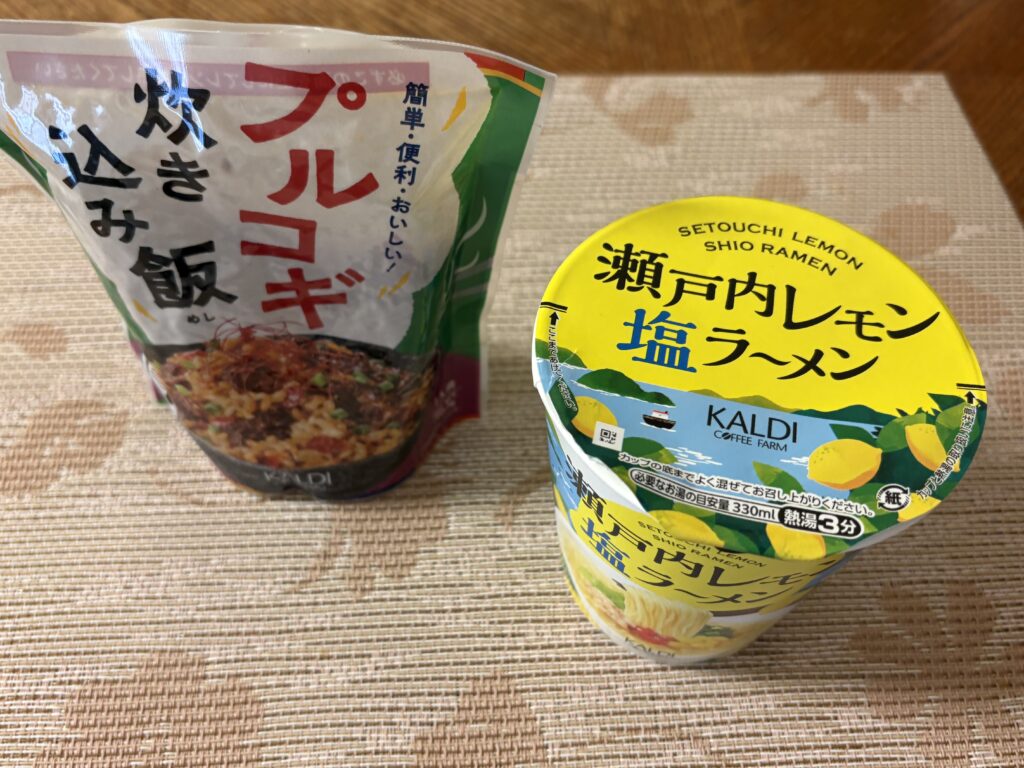 帰宅後、先ほど【KALDI】で買ったプルコギ炊き込み飯と瀬戸内レモン塩ラーメンを食べます。プルコギっぽいご飯はおいしかったです。カップ麺はトムヤムクンのように酸っぱかったです😆。
