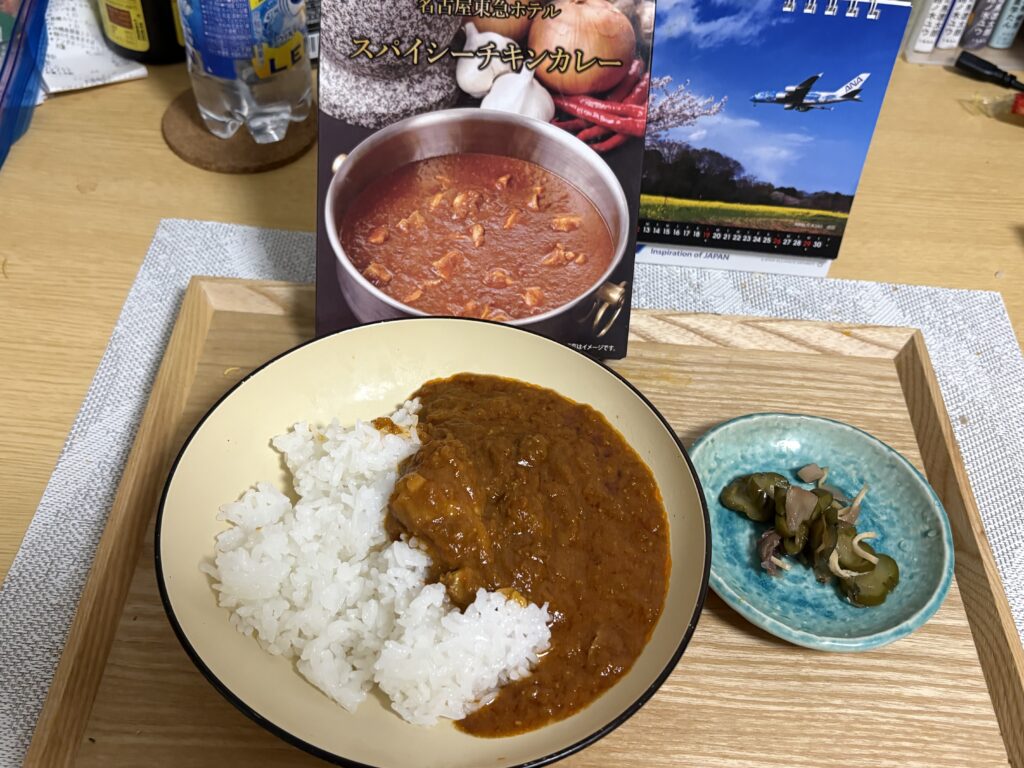 晩ごはんは以前【BAR HERSHE】のひろゆきからもらった【名古屋東急ホテル】のスパイシーチキンカレーです。レトルトですが、さすがホテルカレーだけあって本格的な味でした🤗。