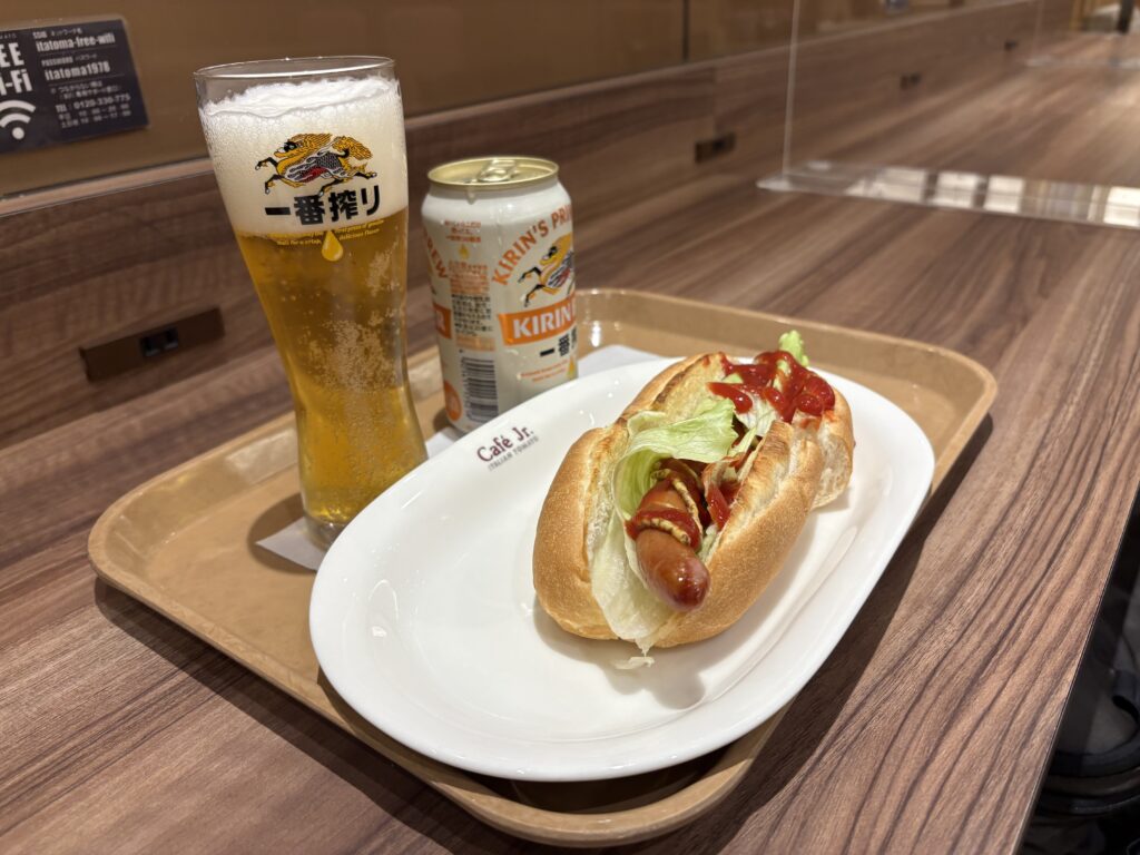 国際通りを歩いて【イタリアントマト カフェジュニア】へ向かいます。平日だからなのか、歩いている人は少なかったです。レタスドッグとビールを頼みます😃。ようやく仕事を開始します。お客さまのメールた対応をしました。