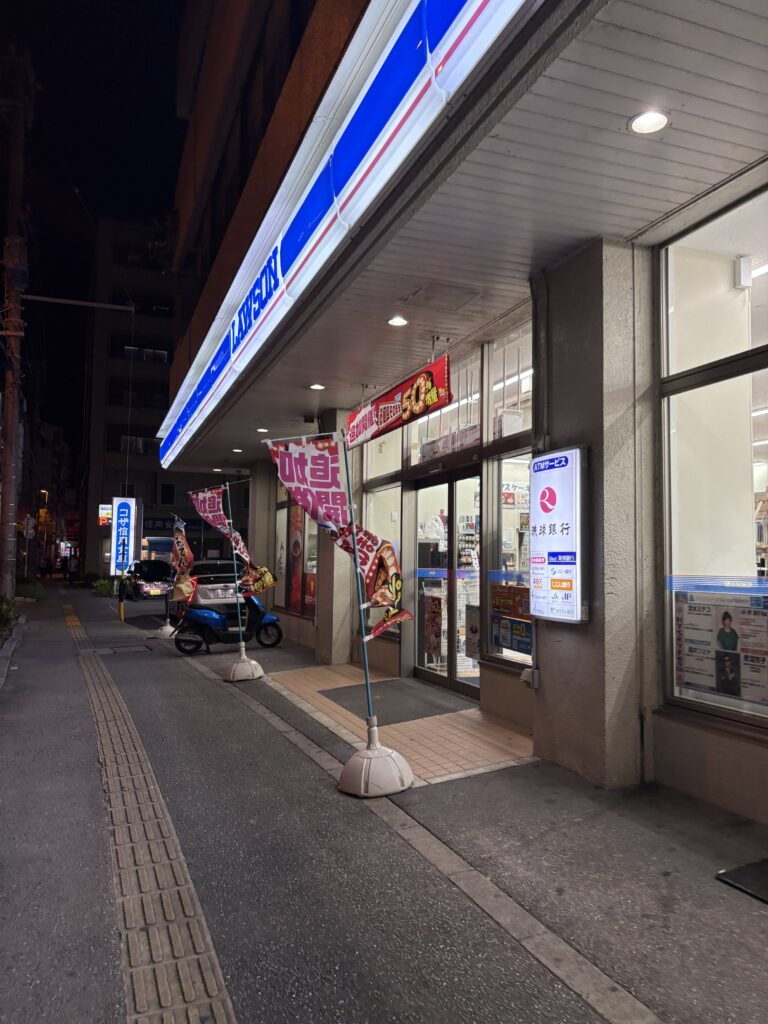 帰りにローソンで買い物をし、ホテルに入る前に【居酒屋三幸】が閉まっているか確認します。灯りはついていますが、準備中の札がぶら下がっています。もしかしてホントに準備中?と思いつつホテルの部屋に戻りました😆。