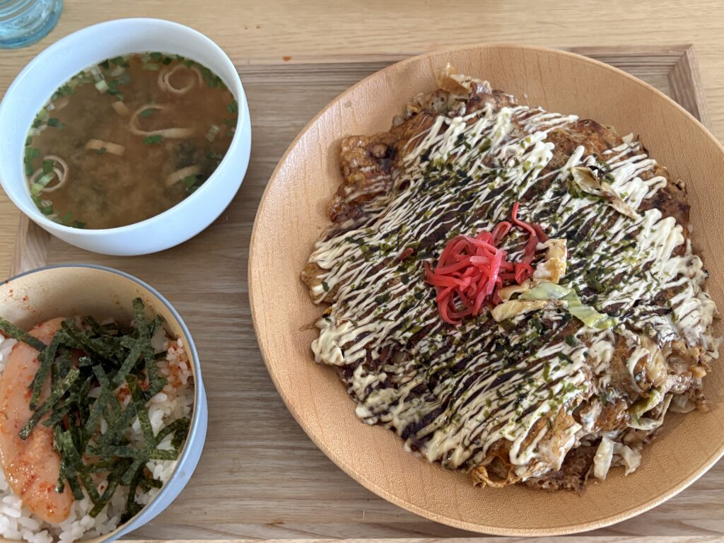 昨夜【BAR HERSHE】できわむからもらった【をぎん】のお好み焼きを食べます。昨日が豚玉、今日はミックス。ミックスは海老が入っていて豪華でした😋。どちらにも薄く切った竹輪が入っていました😮。