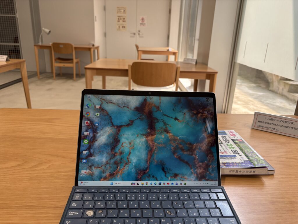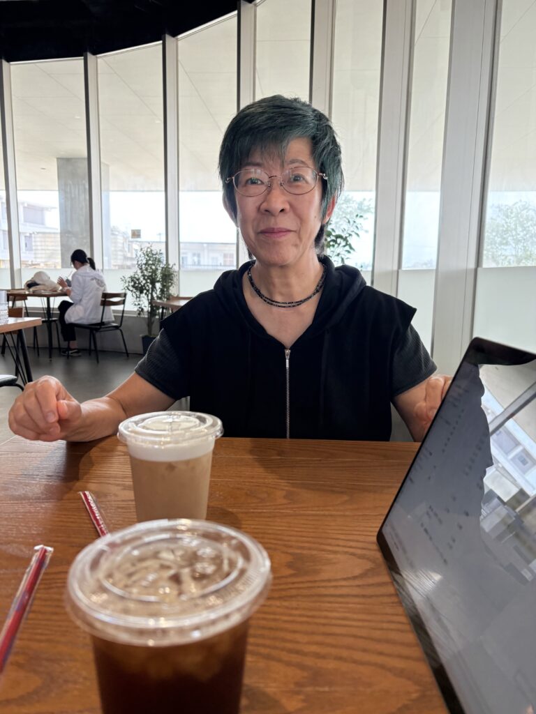 13時から図書館のカフェ【びおとーぷ】でアナタビガイドの高田さんと打ち合わせです。宮古の森オーダーメイド散策ツアーに関する予約状況の確認および、今年のサガリバナ鑑賞ツアーの運営について話をしました😊。この画像は本人から顔出しOKをもらいました😆。