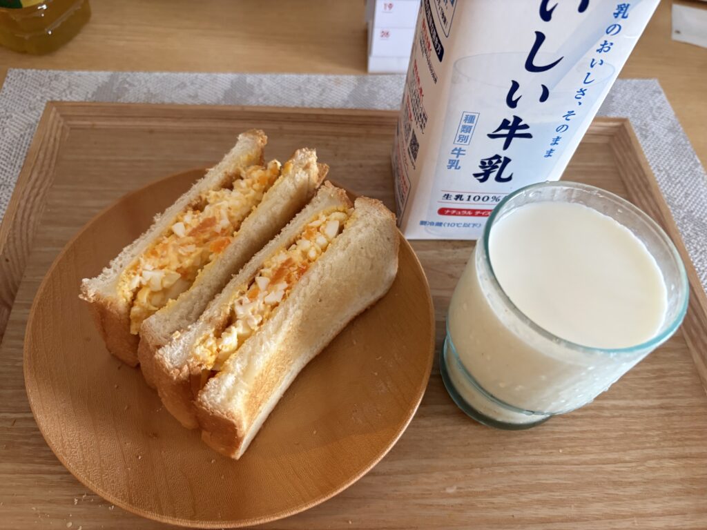 8時起床、2日酔いの朝です😅。2日連続で朝ごはんはおはよー食パンの玉子サンドです。