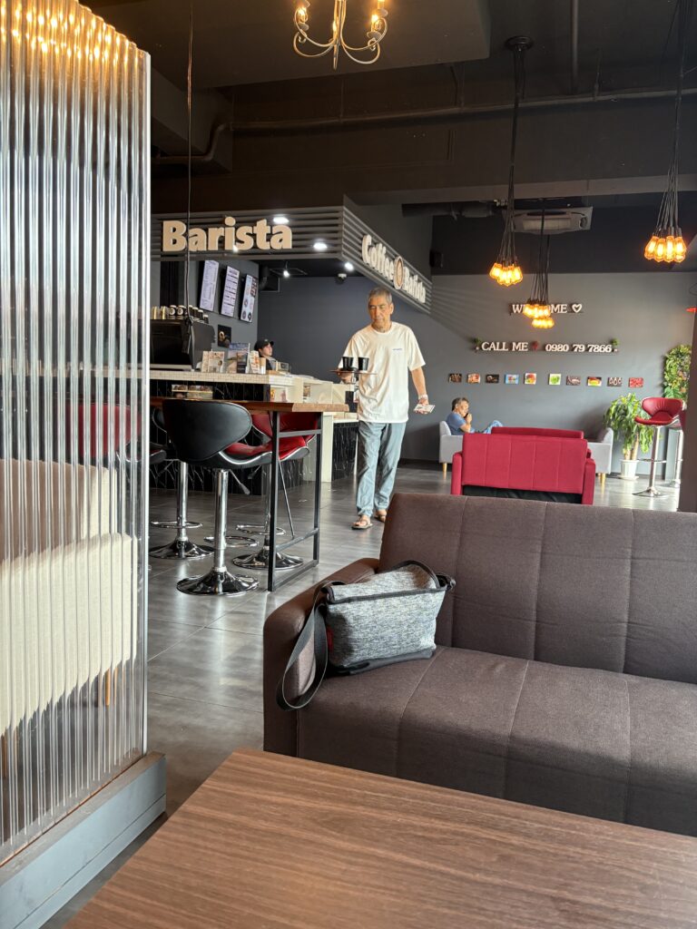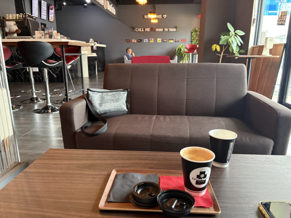 おじさんの車で【Coffee Barista】へ。今日はカフェラテにします。土曜日の昼時ですが空いていてとても静かでした😃。