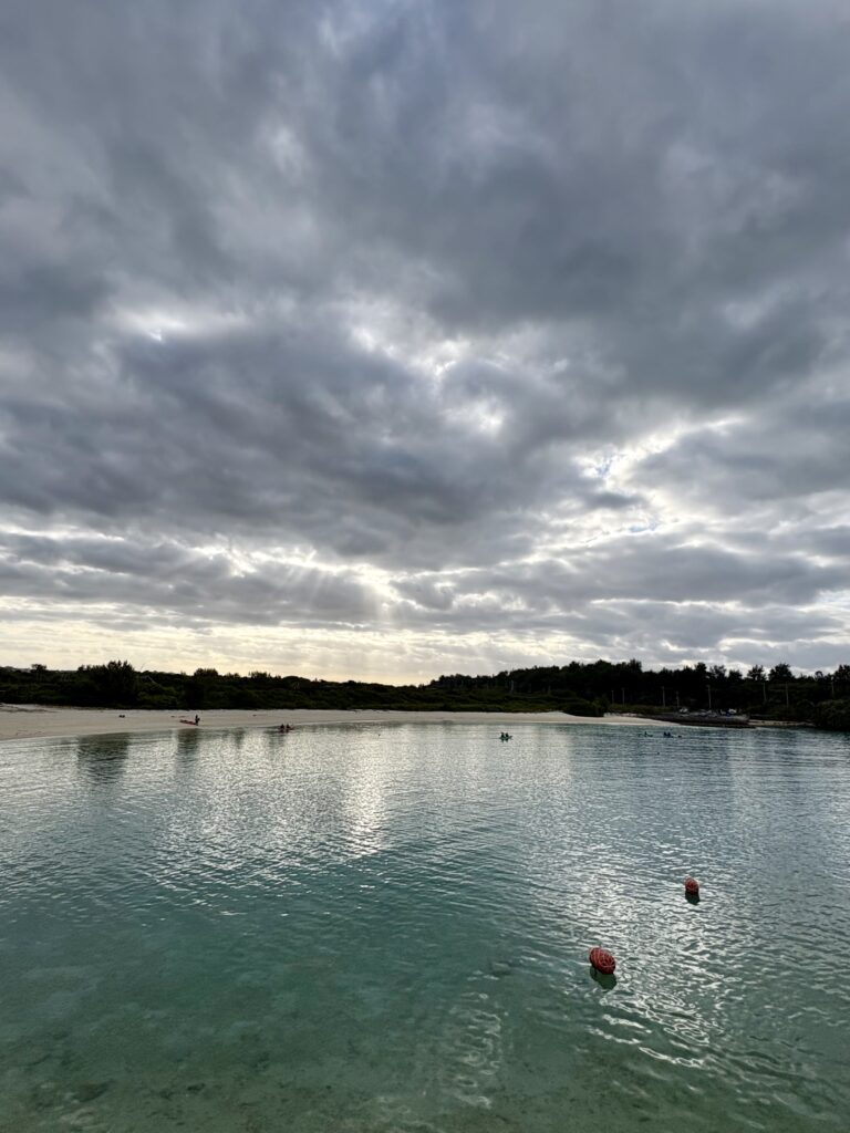 9時前トゥリバーに到着。風が弱いので暖かく感じます。ビーチに出ている人が多いです。サンセットビーチではカヌーでユニの浜へ向かう集団を見かけました。最近風が強いと短めになるのですが、今朝は30分近くウォーキングをしました🤗。