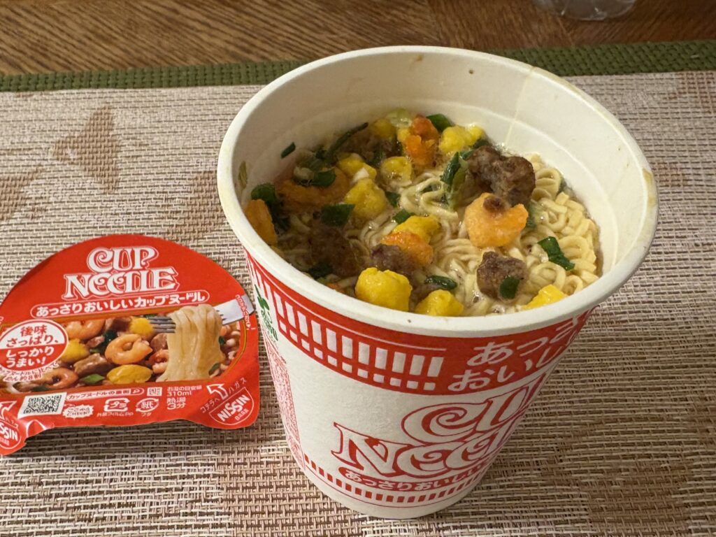 昼ごはんはローソンの沖縄そばです。湯通しをした麺にスープをかけ、具材の軟骨ソーキとかまぼこを盛り付けて完成です。最近【BAR HERSHE】のひろゆきからもらった自家製コーレーグースをかけて食べます。おいしさが倍増しました😋。
