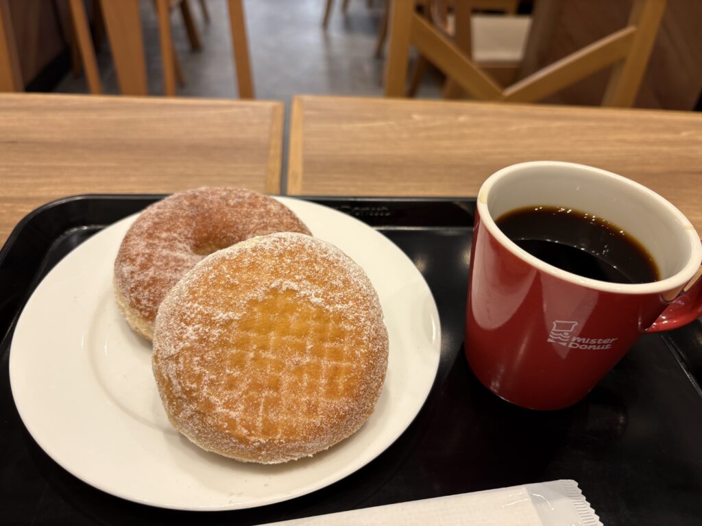 駐車場で解散後【ミスタードーナツ】へ向かいます。到着後、インスタのストーリーズに野鳥観察ツアーの動画をアップ。その後事務作業をしました。1個無料クーポンを使ったのでドーナツは2個食べました。