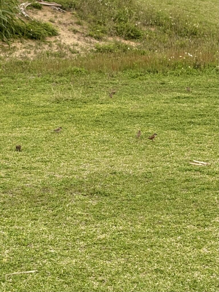 12時半トゥリバーに到着。普段の干潮時刻より水位が下がっています。ビーチには誰もいません。アナタビのモーニングフラ体験の会場である芝生には、たくさんの雀が来ていました。