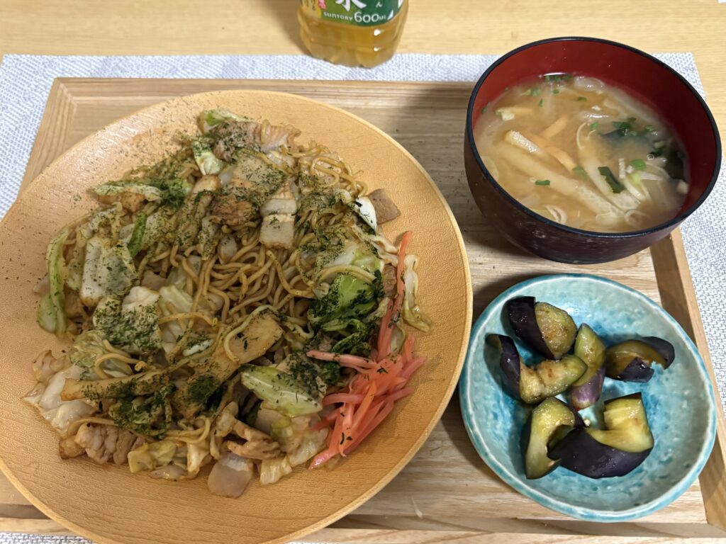 晩ごはんは県産豚バラを使ったマルちゃん焼きそばを食べました。